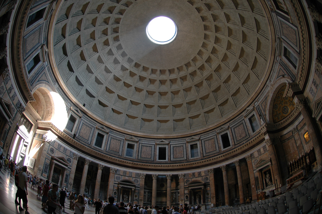 The most fascinating part of the Pantheon is its giant dome, with its famous hole in the top (The eye of the Pantheon, or oculus). The dome was the largest in the world for 1300 years and until today it remains the largest unsupported dome in the world! The diameter of the dome is 43.30 meters or 142ft